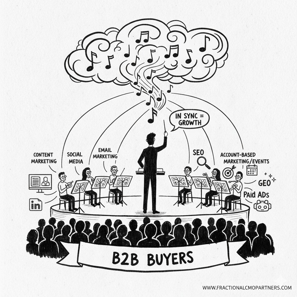 Building a cohesive B2B marketing engine takes vision, alignment, and strategic leadership. If your team is stretched thin or lacks strategic direction, Fractional CMO Partners can help you craft and execute a multi-channel strategy that delivers measurable growth.
